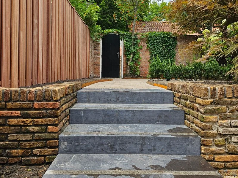 Aanleg van borders met beplanting en terras tegels